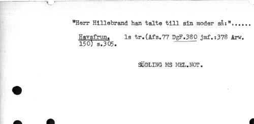 //// "Herr Hillebrand han talte till sin moder så:"...... //// Havsfrun. Is tr.(Afz.77 DgF.380 jmf.:378 Arv. //// 150) s.305. * //// S&DLING MS MEL.NOT. ////