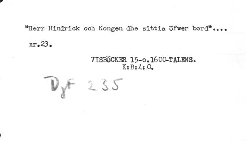 //// "Herr Hindrick och Kongen dhe sittia öfver bord".... //// nr.23. //// VISB&CKER 15-O.160CLT&LENS. //// K: B: A: 0. //// "T)- s ( ^ ////