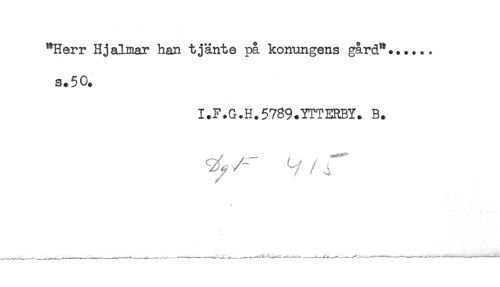 //// "Herr Hjalmar han tjänte på konungens gård"...... //// s.50. //// I.F.G.H.5789.YTTERBY. B. //// ^ / ^ / d ////
