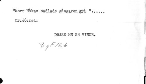 //// "Herr Håkan sadlade gångaren grå "...... ; //// nr.46.mel. //// DRAKE MS KB VISOR. '' //// t //// å //// i //// jj //// ^ [ ////