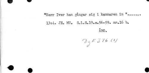 //// "Herr Iver han gångar sig i kajnmaren in "....... //// 13:A. JE. MU. S.L.S.19.s.56-59. nr.16 b. //// ÅBO. //// ! /r J //// i ^ ////