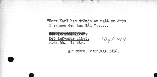 //// h ^ . . ' . ' . , * " //// - //// "Herr Karl han drömde om natt en dröm, //// i I sängen der han låg //// DetTefv^ide liket. T) & /-* % //// s.63-66. 13 str. / ^ //// * //// ATTERBOM. FOET.KAL.l8l6. ////