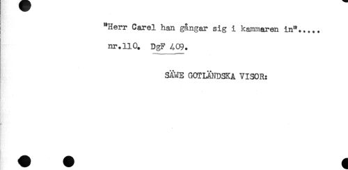 //// "Herr Carel han gångar sig i kammaren in"..... //// nr. 110. DgF AC9. //// SÄ^ GOTLÄNDSKA VISOR: ////