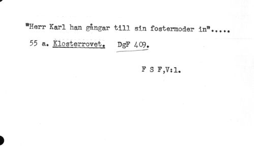 //// "Herr Karl han gängar till sin fostermoder in"..... //// - T -.-. - ........ ,. . . .-, //// 55 a. Klosterrovet. DgF 409. //// F S F,V:1. ////