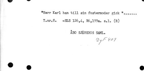 //// "Herr Karl han till sin fostermoder gick //// Y.nr.8. =SLS 126,4, R6,199a. s.l. (R) //// ÅBO SJÖBERGS SAML. ////