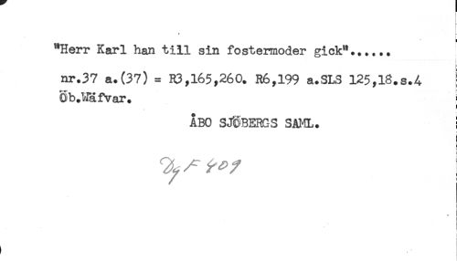//// - //// "Herr Karl han till sin fostermoder gick"...... //// nr.37 a.(37) = R3,165,260. R6,199 a.SLS 125,l8.s.A ; //// Sb.^Jafvar. ^ //// ÅBO SJÖBERGS SAHL. ! //// ! ////