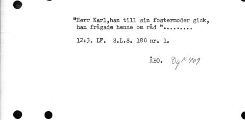 //// "Herr Karl,han till sin fostermoder gick, //// han frågade henne om råd "*........ //// ** //// 12:3. LF. S.L.S. 180 nr. 1. //// ABO. ' ^ //// - ////