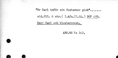 //// j "Hr Carl inför sin fostermor gick"....*.. //// I sid.215. 6 str.( I.Afz.II.2A.) DGF 409. //// . ........ . . //// Herr Carl och klosterrovet. //// AK^.MS Vs 2:3. ////