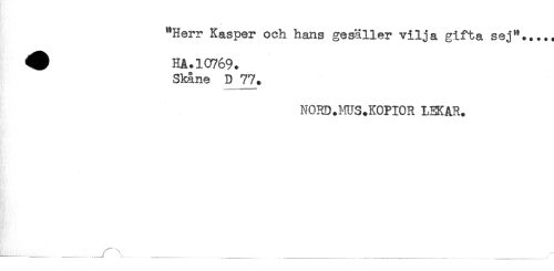 //// "Herr Kasper och hans gesäller vilja gifta sej"..... //// ^ HA.10769* //// Skåne D 77. //// NORD.HUS.KOPIOR LEKAR. ////