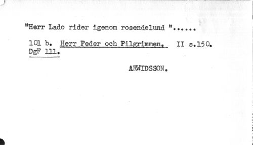 //// "Herr Lago rider igenom rosendelund "...... //// 101 b. Herr Peder och Pilarimmen. II s.150. //// DgF 111. //// ABMIDSSON. //// r //// t ////