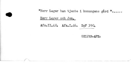 //// ^^ "Herr Lager han tjente i konungens gård //// Herr Laper och Jon. //// . //// Afz.11.40. Afz.1.46. DgF 390. //// ______ „,, //// ^ ** //// GEIJER-AFZ: ////