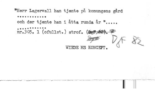 //// och der tjente han i åtta runda år //// nr*305. 1 (ofullst.) strof. //// MIEDE MS KONCEPT. ////