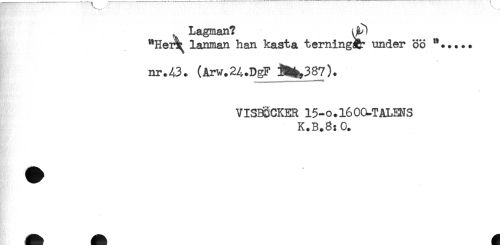 //// Lagman? Jp //// "HeA lanman han kasta terningA* under öö "..... //// nr.43. (Arv.2A.DgF //// VISB&CKER 15-O.160&.TALEMS //// K.B.8:0. ////