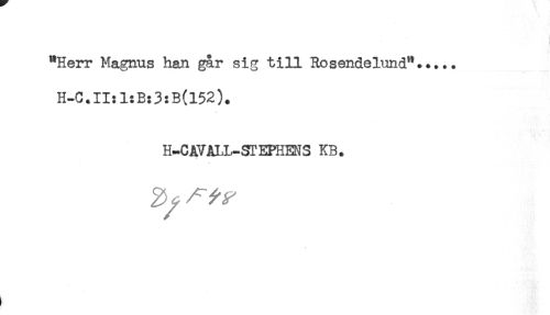 //// "Herr Magnus han gar sig till Rosendelund"..... //// H-C.II:1:B:3:B(152). //// H-CAVALL-STEPHENS KB. ////