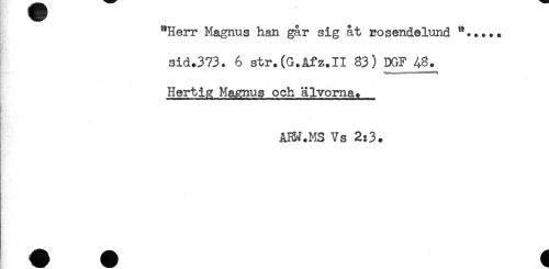 //// "Herr Magnus han går sig åt rosendelund "..... //// ! //// sid.373. 6 str.(G.Afz.II 83) DGF 48. //// ----—^ //// . //// . //// Hertig Magnus och älvorna. //// AHM.MS Vs 2:3. ////