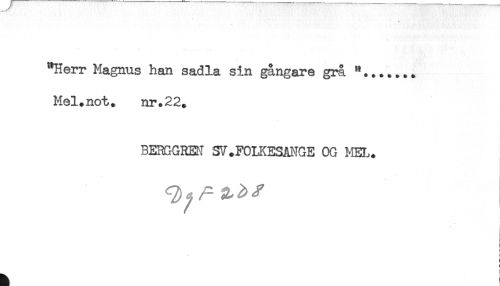 //// "Herr Magnus han sadla sin gångare grå "....... //// Mel.not. nr.22. //// BERGGREN SV.F0LKE3AI^IGE OG MEL. //// t //// . //// i ////