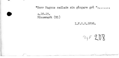 //// "Herr Magnus sadlade sin gångare grå //// ^ s.28-29. //// ] NHssemark (Dl) //// I.F.G.H.2893. ////