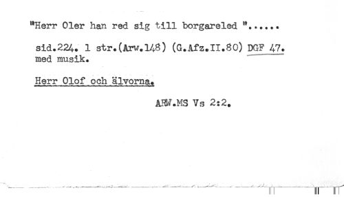 //// "Herr Oler han red sig till borgareled "...... //// sid.2%. 1 str.(Arw.l48) (G.Afz.11.80) DGF 47. //// ned musik. //// Herr Olof och älvorna. //// AH^.MS Vs 2:2. ////