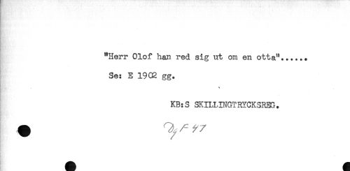 //// "Herr Olof han red sig ut om en otta".....* //// Se: E 1902 gg. //// t //// KB:S SKIUINGTRYCKSREG. //// - //// - //// A * ////
