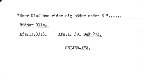 //// "Herr Olof han rider sig söder under S "...... //// Riddar Olle. //// Afz.II.33;3. Afz.I. 39. DgF 274. //// GEIJER-AFZ. ////