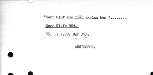 //// "Herr Olof kom från skolan hem "........ //// Herr Olofs Död. //// $5. II s.79. DgF 373. //// AHMIDSSON. ////