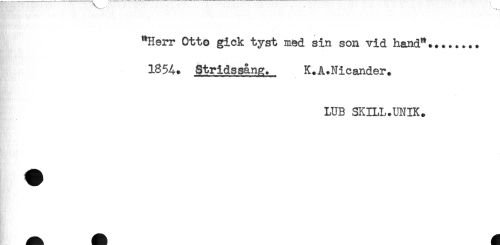 //// "Herr Otto gick tyst med sin son vid hand"........ //// 1854. Stridssång. K.A.Nicander. //// LUB SKILL.UNIK. //// . ////