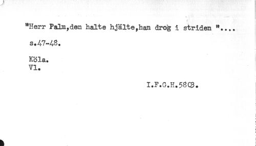 //// "Herr Palm,den halte hjälte,han dro^ i striden //// s.47-48. //// Kola. //// VI. //// I.F.G.H.58Q3. //// - //// t //// t //// ) //// ) ////
