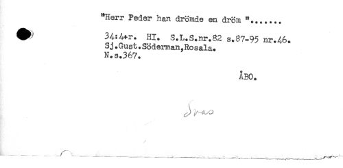 //// "Herr Peder han drömde en dröm //// 34:A+r. Hl. S.L.S.nr.82 s.87-95 nr.46. //// Sj.Gust.SHderman,Rosala. //// N.s.367. //// ÅBO. //// — ----— — — —<--—-———_,___—_ ////