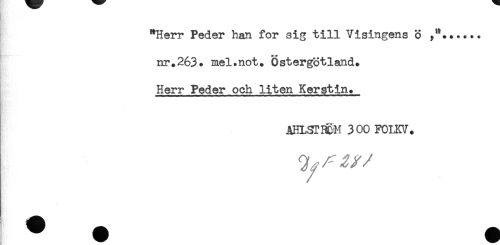 //// K //// < //// "Herr Peder han for sig till Visingens ö //// . //// nr.263. mel.not. Östergötland. //// . //// Herr Peder och liten Kerstin. //// AHLSTREM 300 FOLKV. ////
