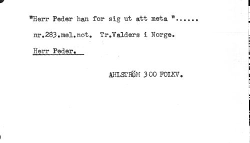 //// r //// "Herr Peder han for sig ut att meta "...... - //// nr.283 .mel.not. Tr.Valders i Norge. L //// Herr Peder. : //// g //// i //// - //// AHLSrPSM 300 FOLKV. ! //// r; //// L //// H //// j ////