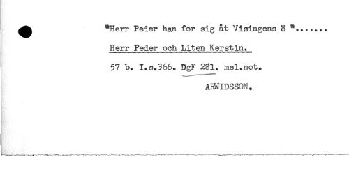 //// ^^ "Herr Peder han for sig åt Visingens o '**...... //// Herr Peder och Liten Kerstin. //// 57 b. I+s.366* DgF 231. mel.not. //// ARMIDSSON. ////