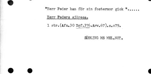 //// "Herr Peder han for sin fostermor gick "*..... //// Herr Peders sjöresa. //// 1 str.(Afz.30Dgf,3%.Arw.67).s.o79. //// .. //// 3M3LING MS MEL.NOT. //// * ////