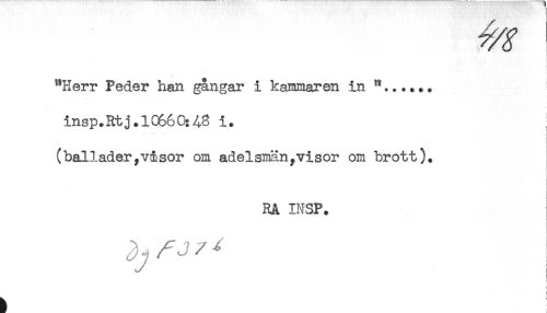 //// i //// ! //// } //// i //// "Herr Peder han gångar i kammaren in //// insp.Rtj.10660:43 i. //// (ballader,visor om adelsmän,visor om brott). //// RA INSP. //// ! //// h ////