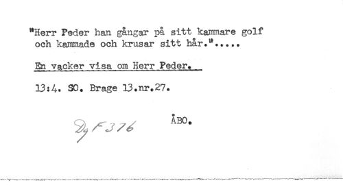 //// En vacker visa om Herr Peder. //// 13:4. SO. Brage 13.nr.27. ////