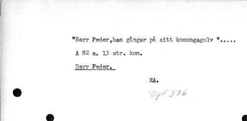 //// "Herr Peder,han gångar på sitt konungagolv **..,.. //// A 82 a. 13 str. kom. //// y': //// Herr Peder. //// RA. //// ! //// ? ////