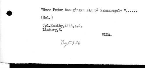 //// ^ "Herr Peder han gångar sig på kammaregolv "...... //// (Mel.) //// Upl.Knutby,41l8,s.2. //// Limbixrg,E. //// ULMA. ////