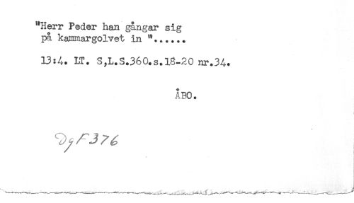 //// "Herr Peder han gångar sig //// på kammargolvet in //// 13:4. LT. S,L.S.360.s.l8-20 nr.34. //// ÅBO. //// < ////