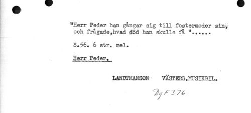 //// "Herr Peder han gångar sig till fostermoder sin,: //// och frågade,hvad död han skulle få "...... //// S.56. 6 str. mel. //// Herr Peder. //// f/itJ ' //// L&NDTMÅNSOM VÄST Em. HUS 1KB IL. ////