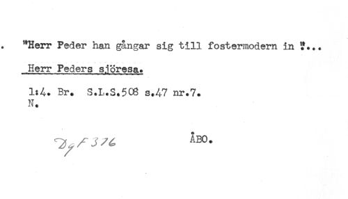 //// "Herr Peder han gångar sig till fostermodern in .. //// Herr Peders sjöresa. //// 1:A. Br. S.L.S.506 s.A7 nr.7. //// N. //// ^ j ÅBO. ////
