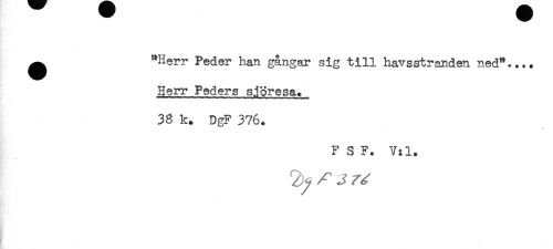 //// ^ "Herr Peder han gångar sig till havsstranden ned".... //// Herr Peders sjöresa. //// 38 k. DgF 376. //// F S F. V:l. //// * ////
