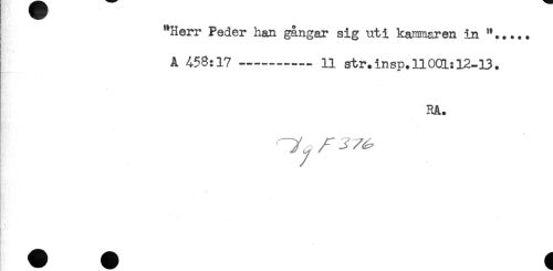 //// "Herr Peder han gångar sig uti kammaren in " + .... //// A 458:17 —.....— 11 str.insp. 11001:12-33. //// RA. //// "Ty ^ //// t ... ////