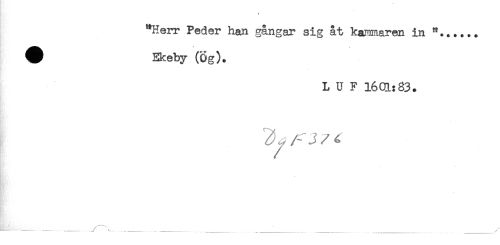 //// f //// "Herr Peder han gångar sig åt kammaren in *...... //// # Ekeby (Ög). //// L U F 16C[L:83. //// A A J/^ ////