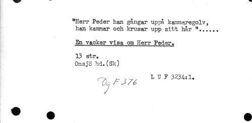 //// En vacker visa om Herr Peder. //// 13 str. //// Onsjö hd*(Sk) ////