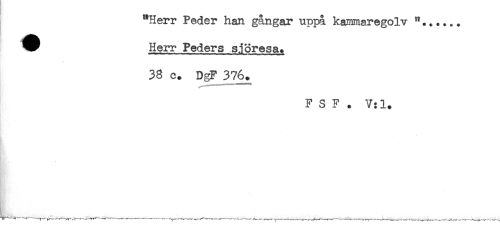 //// "Herr Peder han gångar uppå kacmaregolv //// * Herr Peders snöresa. //// 38 c. DgF 3%. //// F S F . V:l. ////