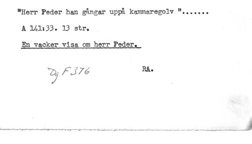 //// A 141:33. 33 str. //// En vacker visa om herr Peder. //// ^ AJRA. ////