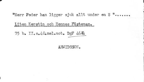 //// t //// ) //// ^ //// ! //// r //// < //// "Herr Peder han ligger sjuJk allt under en ö //// Liten Kerstin och Hennes Fästeman. : //// )- //// < //// § //// 75 b. II.s.AO.mel.not. DgF i //// < //// i //// ! //// ÅBMIDSSON. ////