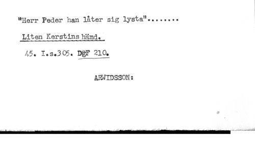 //// "Herr Peder han låter sig lysta^........ //// Liten Kerstins hämd. _ //// 45. I.s.305* DgF 210. //// ÄWIDSSON: //// # ////