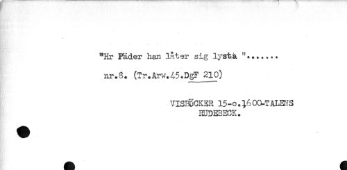//// f //// "Hr Fäder han låter sig lysta ..... //// nr.8. (Tr.Arw.45.DgF 210) //// VISB&CKER 15-o.^600-TALEr^S //// 3DDEBECK. ////