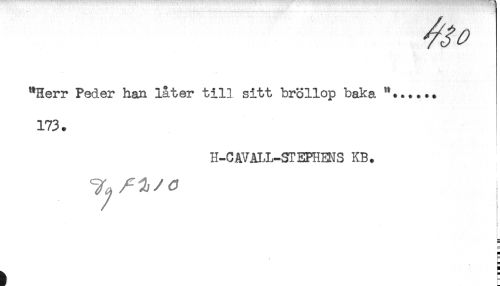 //// "Herr Peder han låter till sitt bröllop baka "...... //// 173. //// H-CAVALL-STEPHEHS KB. ////