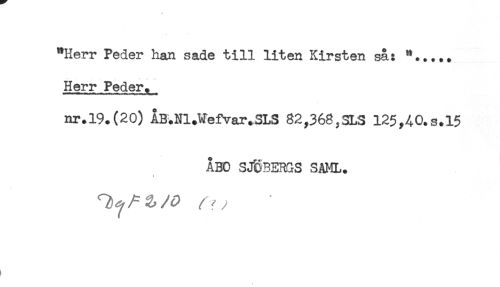 //// "Herr Peder han sade till liten Kirsten så: *..... //// Herr Peder. //// nr.l9.(20) ÅB*Nl.Wefvar.SLS 82,36S,SLS 125,40.s.l5 //// ÅBO SJÖBERGS SAML. //// < ////
